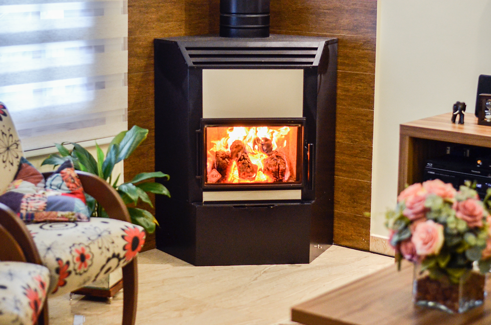 Desafie a imagem da lareira tradicional com um calefator de Canto Heat. Com design exclusivo e inovador, ocupa pouco espaço no ambiente e permite um amplo ângulo de visão do fogo.